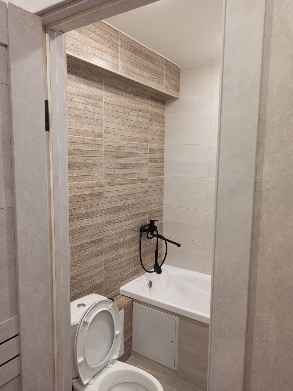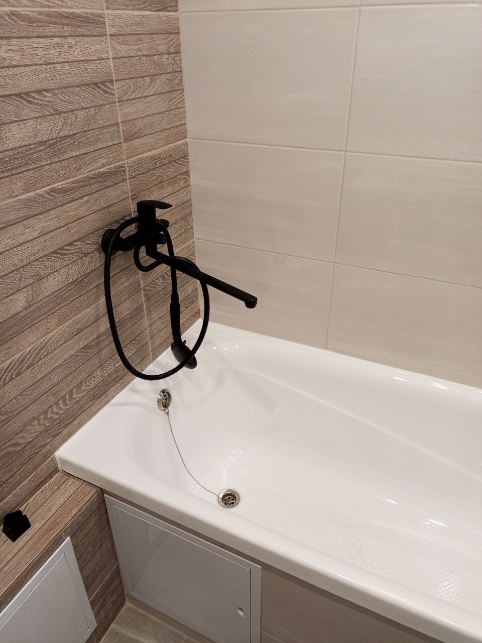 - Укладка плитки (ванна + фартук + пол по всей площади)